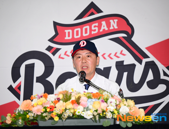 µÎ»ê º£¾î½º ±è¿øÇü °¨µ¶Àº 10¿ù 23ÀÏ ¼¿ï Àá½Ç±¸Àå¿¡¼ ÃëÀÓ½ÄÀ» °®°í µÎ»êÀÇ Á¦ 12´ë °¨µ¶À¸·Î ÃëÀÓÇß´Ù. ±è °¨µ¶Àº Áö³ 20ÀÏ µÎ»ê°ú 2+1³â ÃÖ´ë 20¾ï ¿ø °è¾àÀ» ¸Î°í µÎ»ê ÁöÈÖºÀÀ» Àâ¾Ò´Ù.