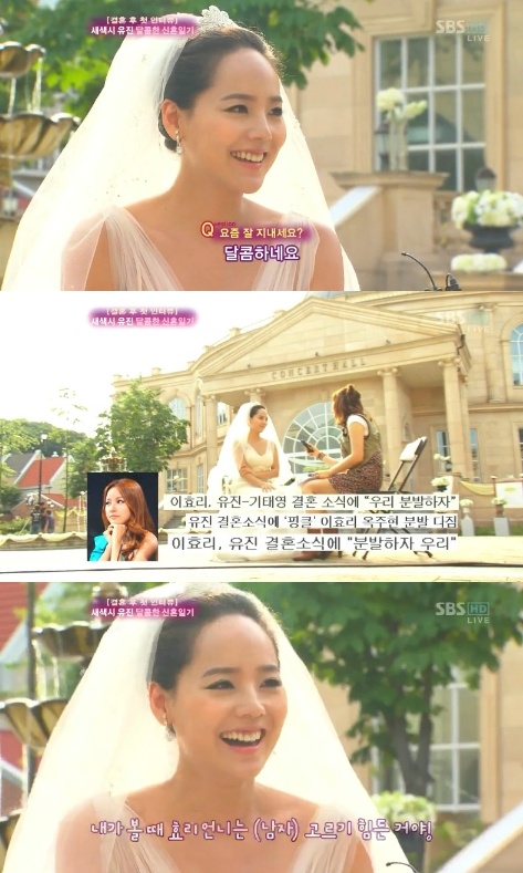 À¯ÁøÀº "°áÈ¥½Ä¿¡ »ç¶÷ÀÌ ³Ê¹« ¸¹ÀÌ ¸ô·Á¼ »çÁøÀ» ´Ù ¸ø Âï¾ú´Ù. ½ÉÁö¾î Ä£ÇÑ »ç¶÷µéµµ »çÁøÀ» ¸ø Âï¾ú´Ù"¸ç "°áÈ¥½Ä »çÁøÀ» ¾ÆÁ÷ ¸øºÁ¼ ³Ê¹« ±Ã±ÝÇÏ´Ù. ´ë±â½Ç¿¡¸¸ ÀÖ´Ù°¡ Á¤ÀÛ ½ÅºÎ´Â °áÈ¥½ÄÀ» ¸øº¸´õ¶ó. ºñµð¿À ¿µ»óÀ» ºÁ¾ßÇÒ °Í °°´Ù"°í ¸»Çß´Ù.