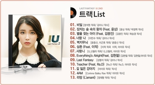 ¾ÆÀÌÀ¯ÀÇ À̹ø Á¤±Ô 2Áý 'Last fantasy'¿¡´Â ±è±¤Áø, À±»ó, Á¤ÀçÇü, ÀÌÀû, ±èÇü¼®, Á¤¼®¿ø, ±èÇöö, À±Á¾½Å, À̹μö, ÄÚ¸° º£Àϸ® ·¡, G.°í¸±¶ó, Ra.D µî ÇöÀç ´Ù¹æ¸éÀ¸·Î Ȱ¹ßÇÏ°Ô È°µ¿ ÁßÀÎ ±¹³» ÃÖ°íÀÇ ¹ÂÁö¼Çµé°ú ÀÛ°î°¡µéÀÌ Âü¿©Çß´Ù.