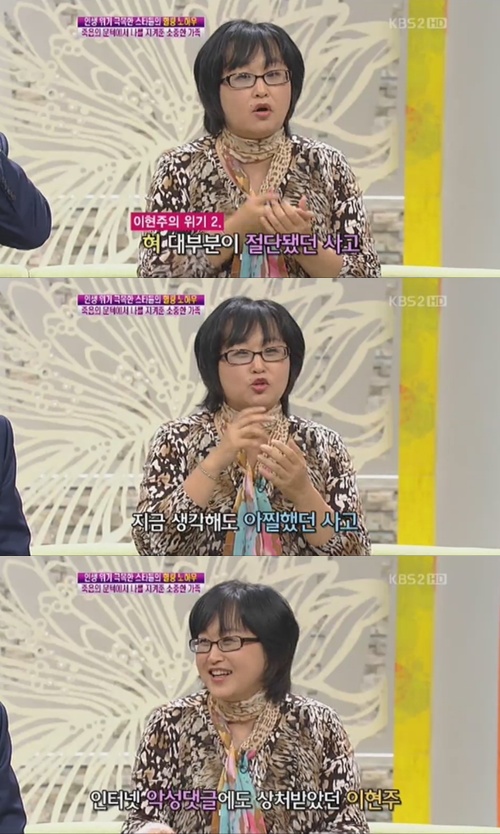 ÀÌÇöÁÖ´Â 11¿ù 7ÀÏ ¹æ¼ÛµÈ KBS 2TV '¿©À¯¸¸¸¸'¿¡¼ ±³Åë»ç°í ÈÄ ¿ì¿ïÁõ°ú ¾ËÄÝ Áßµ¶±îÁö °Þ¾ú´ø ½½Çİú ±Øº¹°úÁ¤À» ¼ÖÁ÷ÇÏ°Ô °ø°³Çß´Ù.