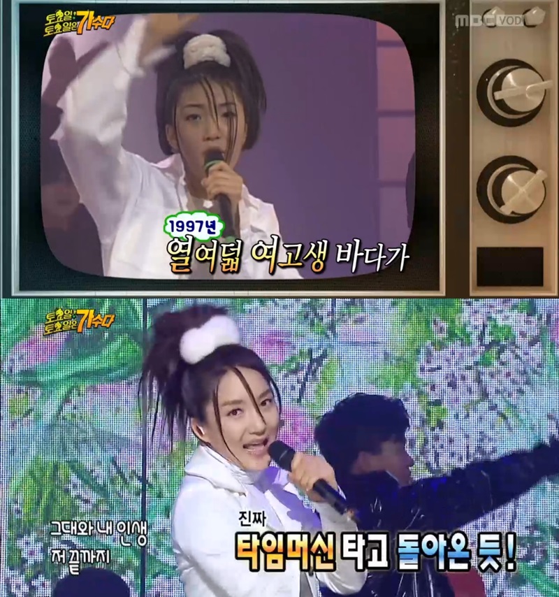 ÇÑÆí ¼Ò³à½Ã´ë ¼ÇöÀº À¯ÁøÀÇ ºóÀÚ¸®¸¦ ´ë½ÅÇØ »óÅÇÑ ¸Å·ÂÀ» »Ë³Â´Ù. ½´´Â 12³â¸¸¿¡ ¼´Â ¹«´ë¿¡µµ À§È°¨ ¾ø´Â ¸ð½ÀÀ» º¸¿´´Ù. Á¤Çüµ·, ÇÏÇϰ¡ ´ç½Ã °´¿ø ·¡ÆÛ¿´´ø ¿¡¸¯°ú ¾ØµðÀÇ ¿ªÇÒÀ» ¸Ã¾Æ SES¿Í È£ÈíÀ» ¸ÂÃè´Ù. (»çÁø=MBC '¹«ÇѵµÀü ÅäÅä°¡' SES ¹Ù´Ù ¿©°í½ÃÀý°ú ¶È°°Àº ¹Ì¸ð ĸó)