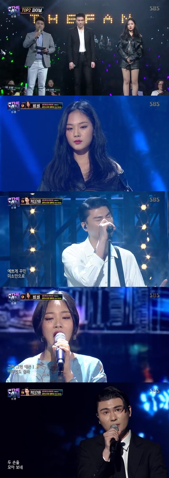 2¿ù 9ÀÏ ¹æ¼ÛµÈ SBS '´õ ÆÒ'¿¡¼´Â TOP2 ÆÄÀ̳Π¹«´ë°¡ °ø°³µÆ´Ù. TO2¿¡ ¿À¸¥ ºñºñ, Ä«´õ°¡µçÀº ÃÖÈÄÀÇ 1ÀÎ ÀÚ¸®¸¦ µÎ°í ¸¶Áö¸· ¹«´ë¸¦ ÆîÃÆ´Ù. ÃÖÁ¾ ¿ì½ÂÀÚ´Â À½¾Ç»çÀÌÆ® ¾Û ÅõÇ¥Á¡¼ö, ½Ç½Ã°£ ¹®ÀÚÅõÇ¥ Á¡¼ö¸¦ ÅëÇØ °áÁ¤µÆ´Ù.