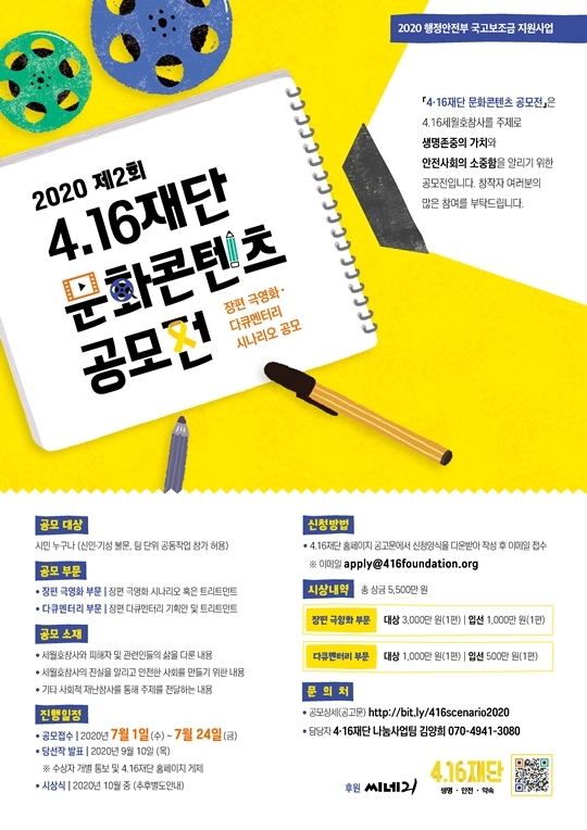 4.16Àç´ÜÀÌ ¼¼¿ùÈ£ Âü»ç ȤÀº »çȸÀû Àç³À» ¼ÒÀç·Î ÇÑ ÀåÆí ±Ø¿µÈ¿Í ´ÙÅ¥¸àÅ͸®ÀÇ ½Ã³ª¸®¿À °ø¸ðÀüÀ» ¿¬´Ù. ¿ÃÇØ·Î 2ȸ°¸¦ ¸ÂÀº °ø¸ðÀüÀº 2020 ÇàÁ¤¾ÈÀüºÎ ±¹°íº¸Á¶±Ý Áö¿ø»ç¾÷À¸·Î, ÃÑ 5,500¸¸¿øÀÇ »ó±ÝÀÌ °É·ÁÀÖ´Ù.