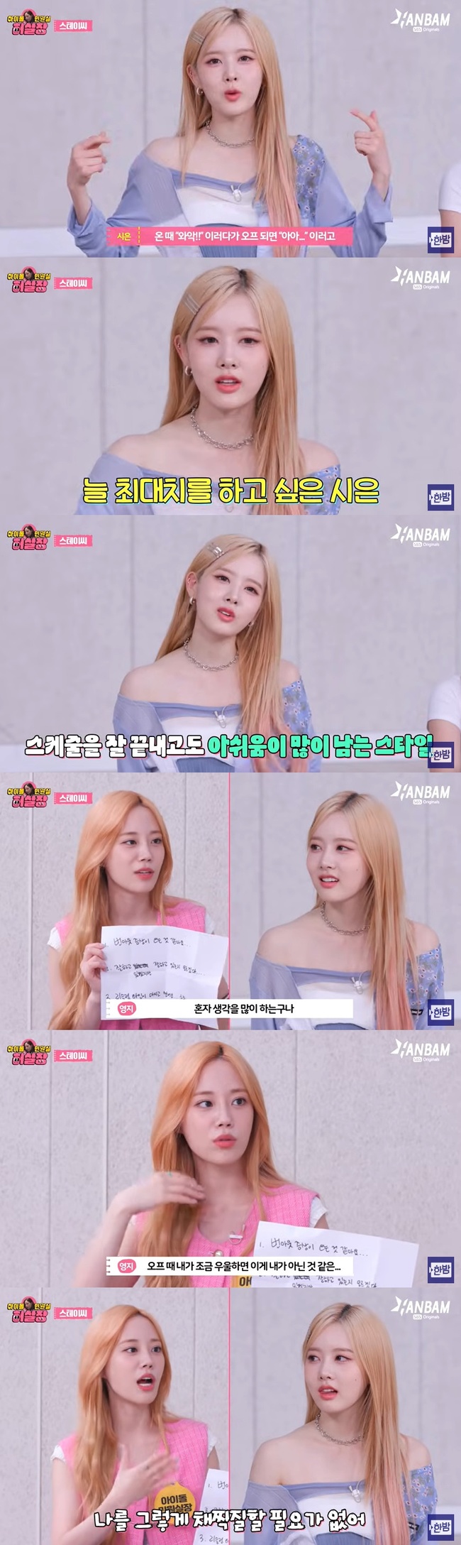 ½ÃÀºÀº "ÀßÇϰí ÀÖ°ÚÁö¸¸ ÀßÇϰí ÀÖ´ÂÁö ¸ð¸£°Ú´Ù. ¹º°¡ Àú´Â À̸¸Å ÀßÇÏ°í ½ÍÀºµ¥ ½ºÄÉÁÙÀº ¾öû ¸¹°í, ÀÌ ÂªÀº ½Ã°£ ¾È¿¡ ¸¹Àº °É ÃÖ´ëÇÑ ´É·üÀ» ¿Ã·Á¼ ÇØ³»¾ß ÇÏ´Ï±î ¹º°¡ °è¼Ó ¾Æ½±´õ¶ó"¸ç "½ºÄÉÁÙÀ» Àß ³¡³»µµ 'ÀÌ·¸°Ô ÇßÀ¸¸é ÁÁ¾ÒÀ» ÅÙµ¥'¶ó´Â ¾Æ½¬¿òÀÌ ¸¹ÀÌ ³²´Â´Ù. È¥ÀÚ »ý°¢À» ¸¹ÀÌ ÇÏ´Â ½ºÅ¸ÀÏ"À̶ó°í ¸»ÇØ ¾ÈŸ±î¿òÀ» ÀھƳ´Ù.