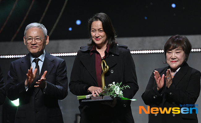 ¿¬Ãâ°¡ ¹ÚÄ®¸°(°¡¿îµ¥)ÀÌ 10¿ù 31ÀÏ ¿ÀÈÄ ¼¿ï Áß±¸ ±¹¸³±ØÀå ÇØ¿À¸§±ØÀå¿¡¼ ¿¸° ¡®Á¦15ȸ 2024 ´ëÇѹα¹ ´ëÁß¹®È¿¹¼ú»ó¡¯ º» ½Ã»ó½Ä¿¡ Âü¼®ÇØ ¹è¿ì ÃÖÀ縲ÀÇ ±¹¹«ÃѸ® ǥâÀ» ´ë¸® ¼öÈÆ¹Þ°í ÀÖ´Ù.