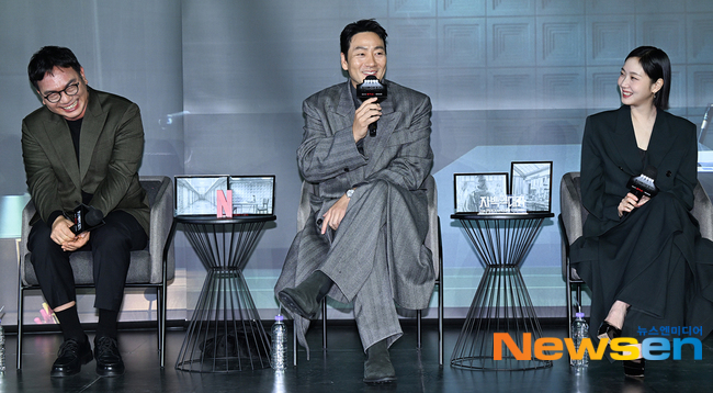 °¨µ¶, ÀÌÁ¤È¿, ¹è¿ì ¹ÚÇØ¼ö(°¡¿îµ¥), ±è°íÀºÀÌ 12¿ù 3ÀÏ ¿ÀÈÄ ¼¿ï ¿ë»ê±¸ CGV ¿ë»ê¾ÆÀÌÆÄÅ©¸ô¿¡¼ ¿¸° ³ÝÇø¯½º ½Ã¸®Áî 'ÀÚ¹éÀÇ ´ë°¡' ½Ã»çȸ ¹× °£´ãȸ¿¡ Âü¼®ÇØ °£´ãȸ¸¦ °¡Áö°í ÀÖ´Ù.